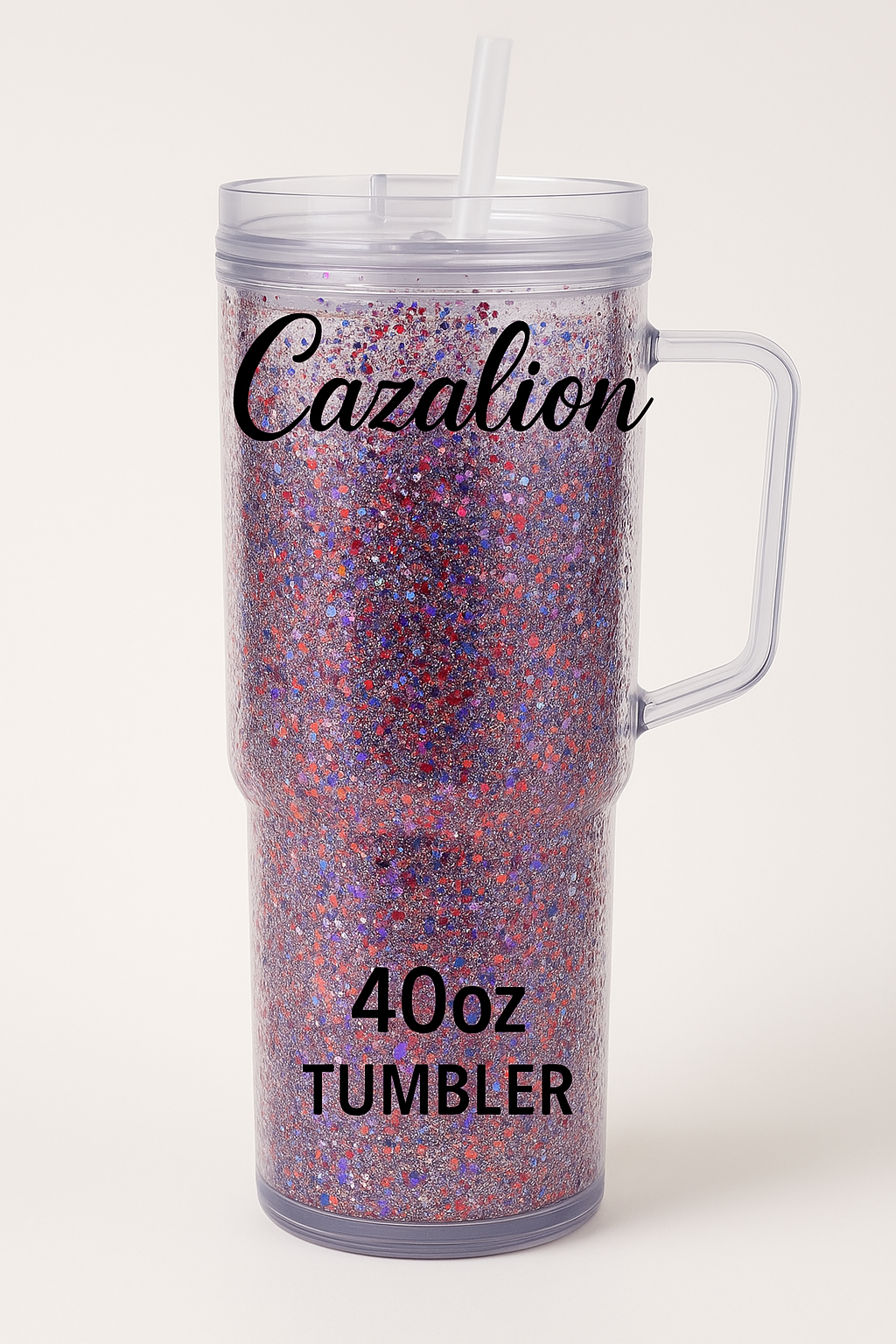 40oz Glitter Snow Globe Tumbler – Sparkly Double-Walled Cup with Handle & Straw
