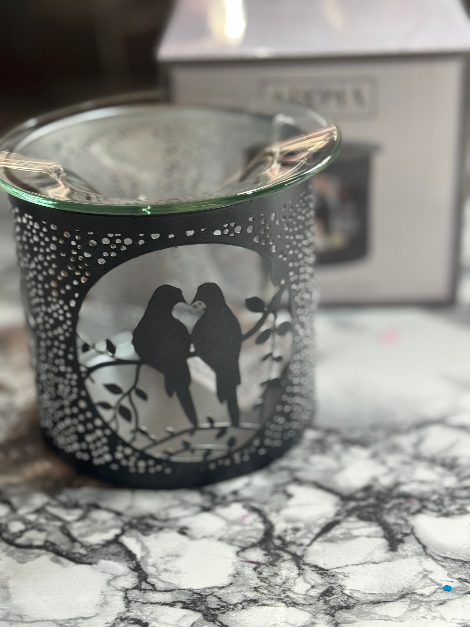 Bring warmth, romance, and charm to your space with our beautiful Dove Tealight Wax Melt Burner. Featuring two lovebirds nestled on a branch, this elegant burner creates a soft, glowing silhouette when lit—perfect for creating a cosy and relaxing atmosphere.